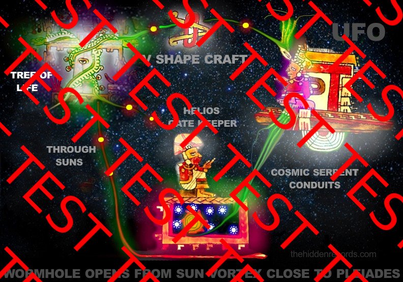 But the best detail is that icon at the top centre part of the image… a symbol of a gold ‘V’ with oval ring around it. The Maya place it as a symbol near the Bolon Yokte deity in smaller UFO (or probably just a compact UFO depiction showing he is INSIDE the ‘V’ shaped craft) and next to the Tree of life showing it is connected along cosmic serpents and showing it is sacred. I believe this is the ‘V’ shape UFO that might be appearing near the end of December. Hungarian researcher Márton Molnár-Gáb suggests very convincingly that the oval ring around the ‘V’ has a clear depiction… it is going through the wormhole!